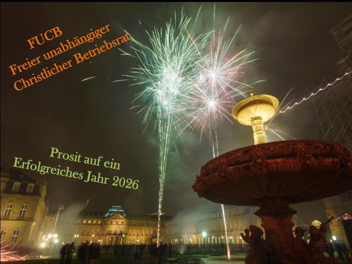 Januar 1, 2026Januar 8, 2026 Neujahresgruß vom FUCB Der freie unabhängige christliche Betriebsrat wünscht allen Kollegen und Kolleginnen ein gesundes Neues Jahr 2026.
